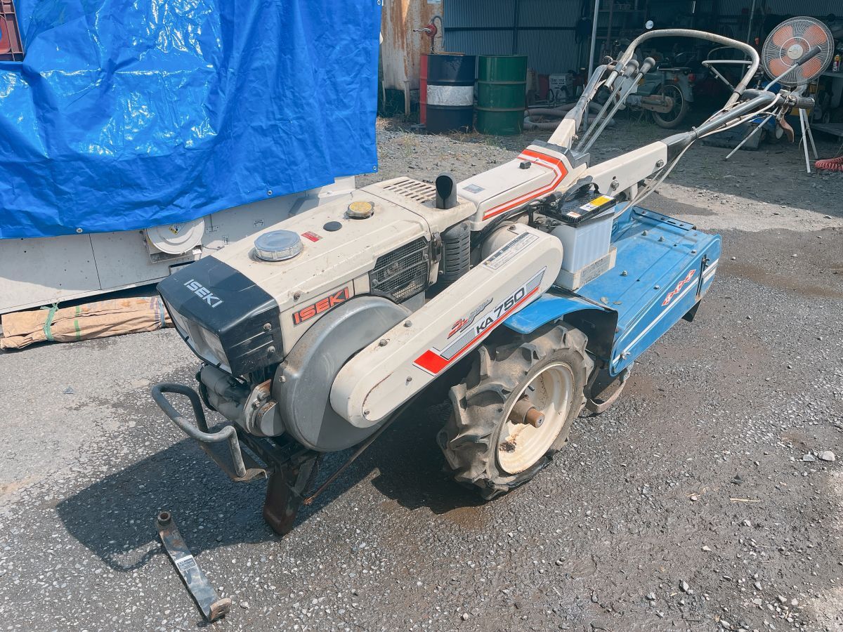 - 中古 ISEKI イセキ ディーゼル 耕うん機 KA750 セルスタートOK エンジン HS75-L 7.5馬力 ※パンクあり 耕耘 耕運機 茨城 0821あら1 I外 自