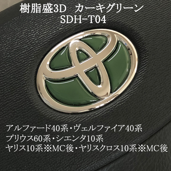 > トヨタ ステアリング エンブレムシート カーキグリーン SDH-T04 ハンドル用 樹脂盛立体3Dシール ステッカー 取付け簡単 TOYOTA ZEROWIN