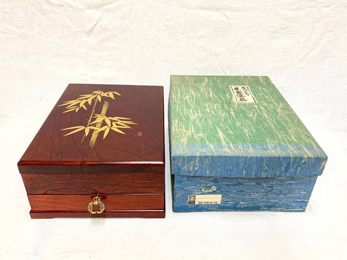 > 17778/会津塗 曽根工芸 SONE KOGEI 竹金蒔絵 文庫 小引き出し 硯箱 木箱 蒔絵文具箱 手づくり 未使用 紙箱 木製 漆器 漆芸 工芸品 特選品