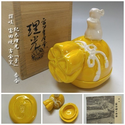 - 【K-8】讃岐 富田焼 吉金窯 紀太理光 「子」香合 共箱付