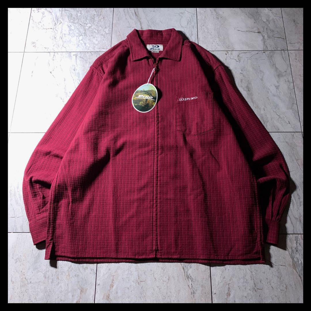 - 00s PIKO シアサッカー チェック ボックス ジップ シャツ 赤 M