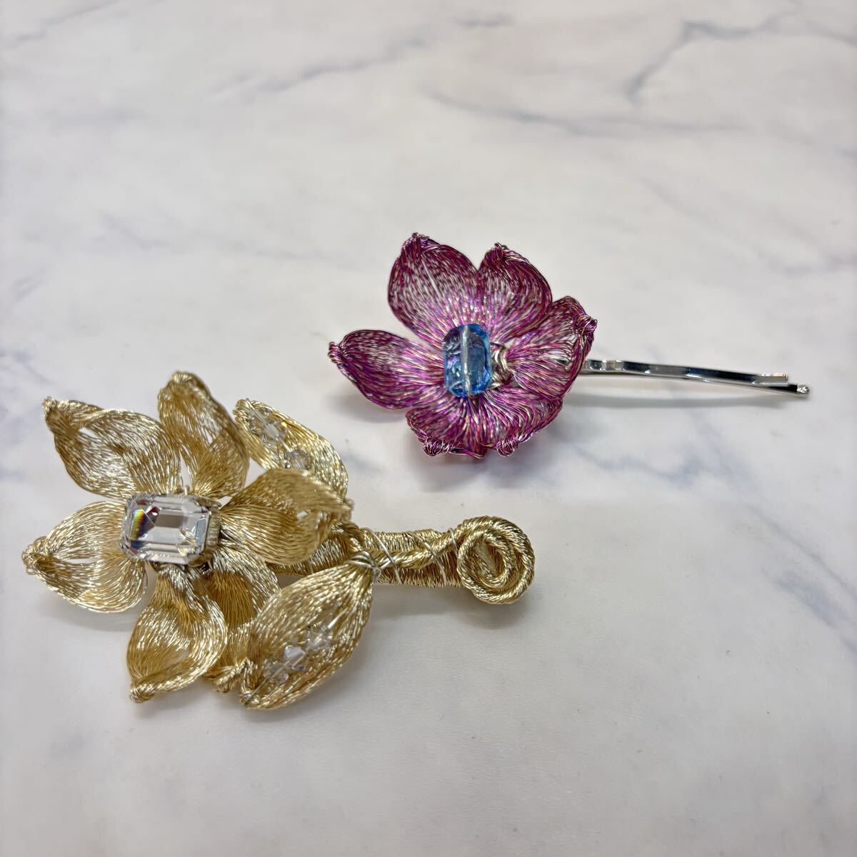 - 極美品 2点セット フランス製 コレットマル-フ colette Malouf バレッタ ピンク 髪留め 花 ゴールドカラー レディース ラインストーン