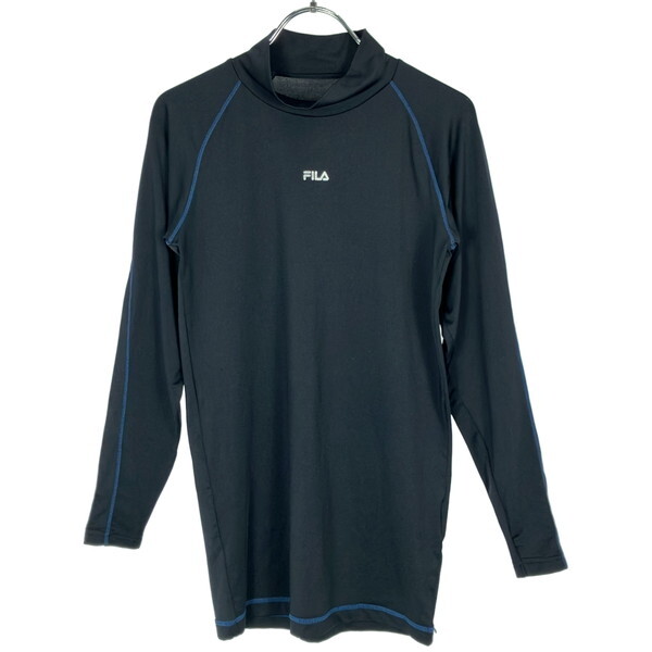 > 古着 メンズM FILA/フィラ インナーシャツ 長袖 モックネック スポーツウェア ブラック/シルバー/ブルー