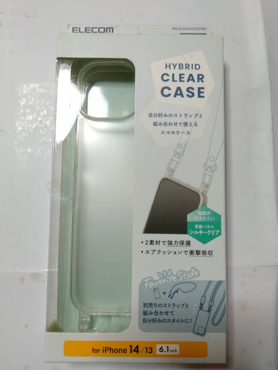 > ELECOM iPhone 14 iPhone 13 ハイブリッドケース ショルダーストラップホール付 シルキークリア 側)弾力性あるTPU 背)指紋付にくい特殊加工