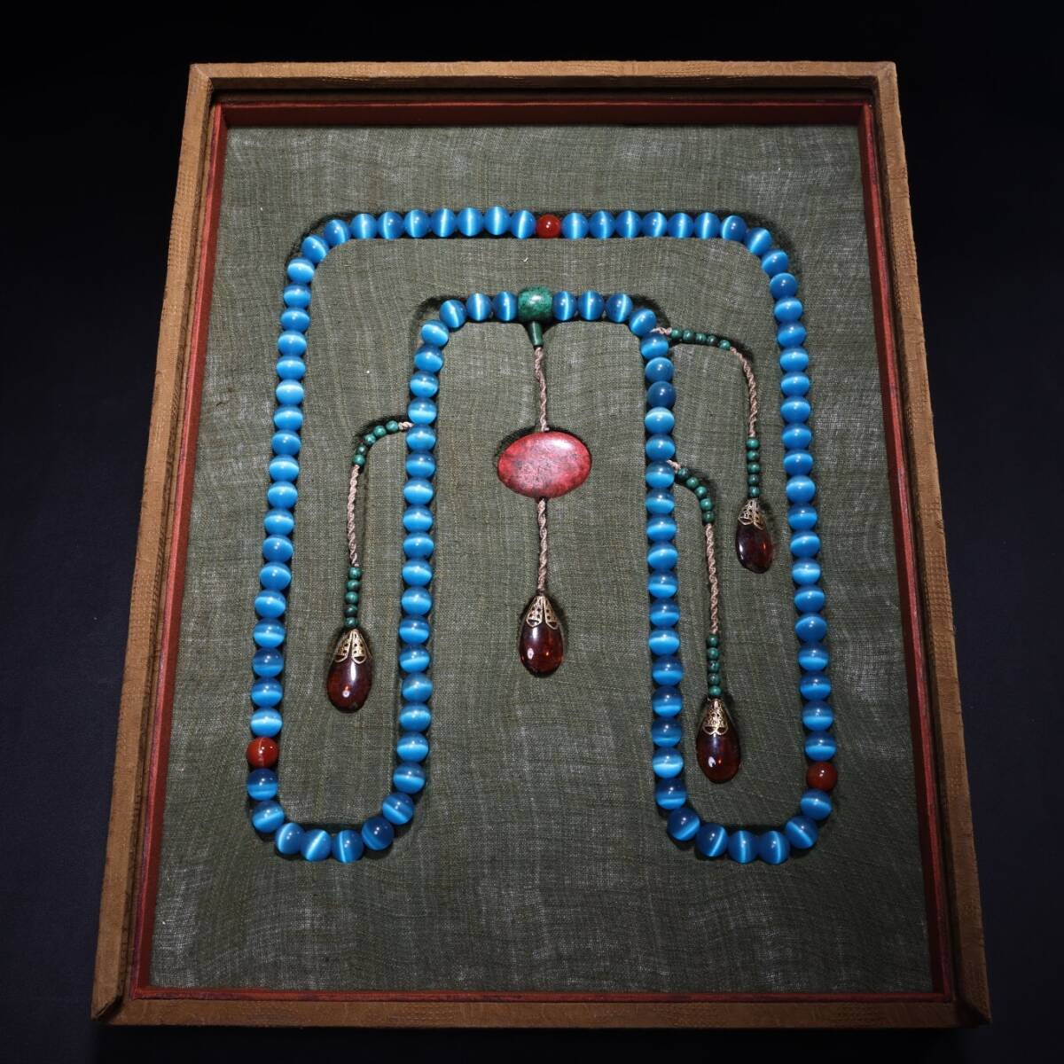 - 『館蔵珍品 ネコ眼石彫 朝珠 箱付 根付 裝身具』稀少珍蔵品 古賞物 貴重物品 収蔵品 中国古美術 時代物 古董品