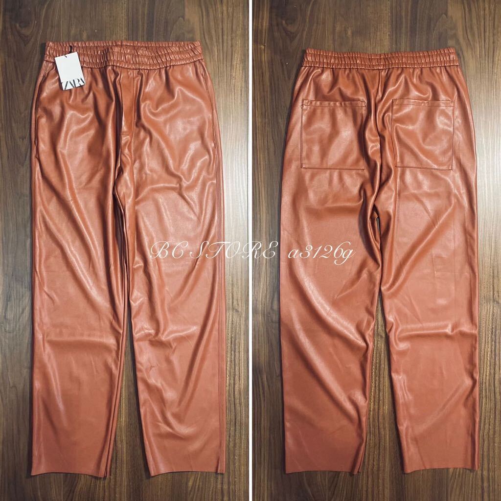 - 新品 ZARA フェイクレザーパンツ Lサイズ BROWN メンズ ザラ パンツ ボトムス ポケット4箇所 ウエストゴム 調整紐付き