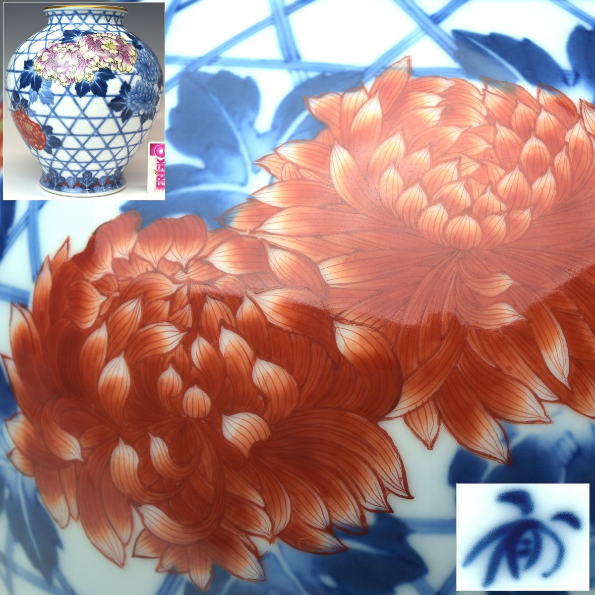 - 香蘭社 「盛り絵花籠図花瓶」 時代 高さ24,5cm 本物保証 P2171【趣楽】
