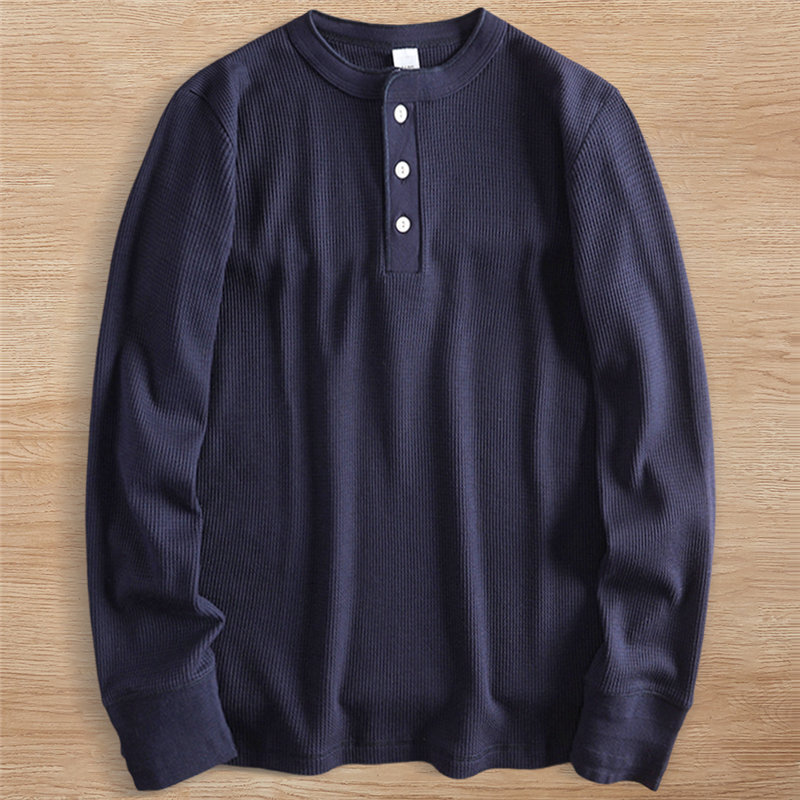 - Y6306-L ネイビー 新品 ヘンリーネック Tシャツ 肌に優しい ワッフル 長袖 通気 ウォッシュ加工 サマー 秋 カジュアル トップス 高品質