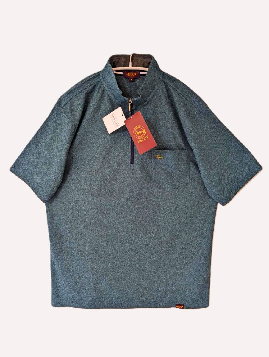 > 【新品】タグつき ☆DECOY デコイ ハーフジップ半袖トップス メンズL グリーン ロゴ刺繍ポケット ゴルフ カジュアル 紳士 ダンディ 清楚系