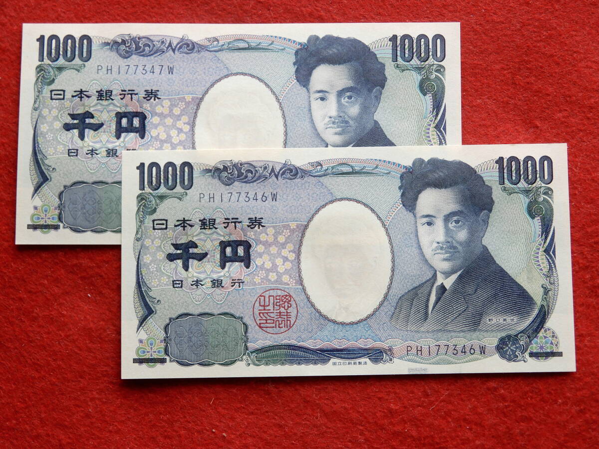 - 旧紙幣 野口英世 連番 1000円札 ピン札 2枚