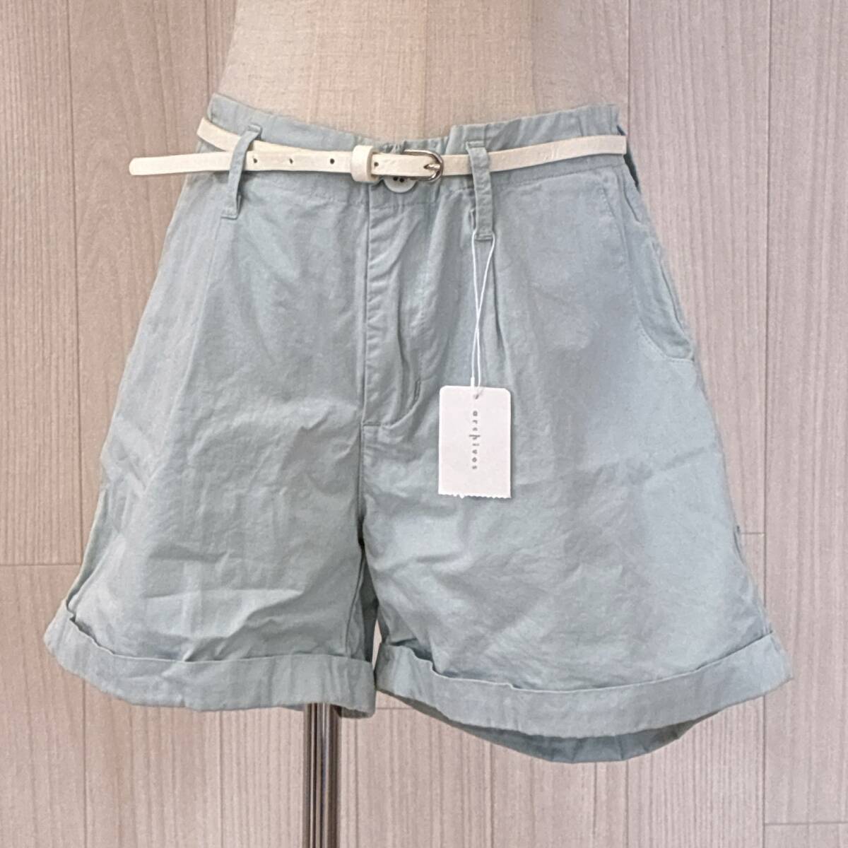 - Y2098 タグ付 未使用 archives アルシーヴ レディース ショートパンツ ベルト付き サイド・後ろポケット 薄手 M 無地 綿100% 涼しげ 夏