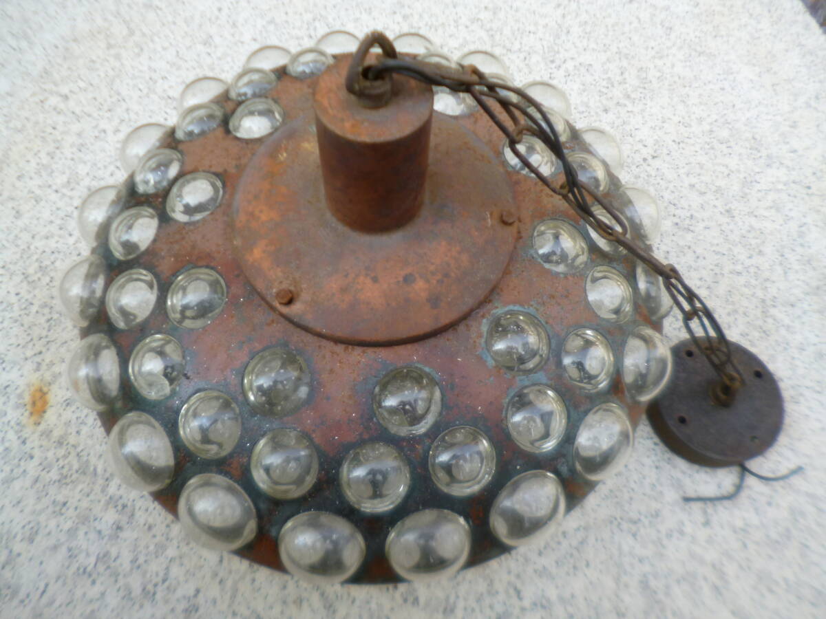 > ■レトロ アンティーク照明 直径37㎝×高さ14㎝(灯具含む21㎝)半円ガラス ヴィンテージ照明 天井吊り下げ ガラス製※点灯未確認です■