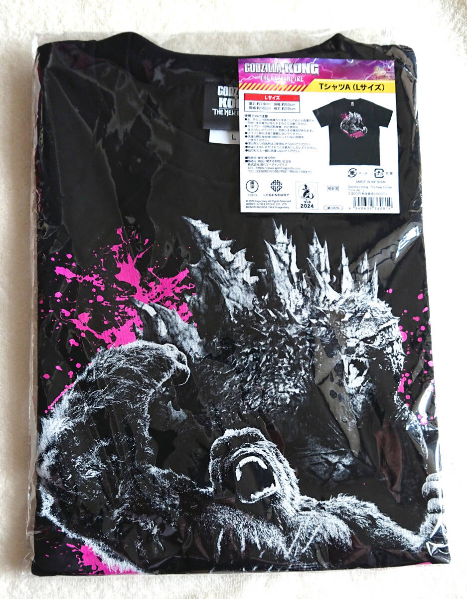 - 【新品未開封】★ Tシャツ / ゴジラ&コング 新たなる帝国 ♪ Lサイズ 綿100% ブラック ♪ 映画 東宝 2024 劇場グッズ ベトナム製