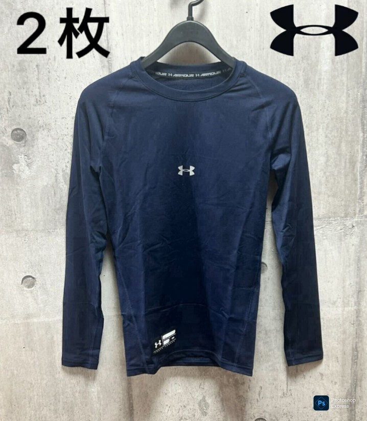- 2枚 未使用 正規品 ネイビー SM メンズ アンダーアーマー HEATGEAR ヒートギア ARMOUR COMP LS 長袖 クルー野球 トレーニングウェアー