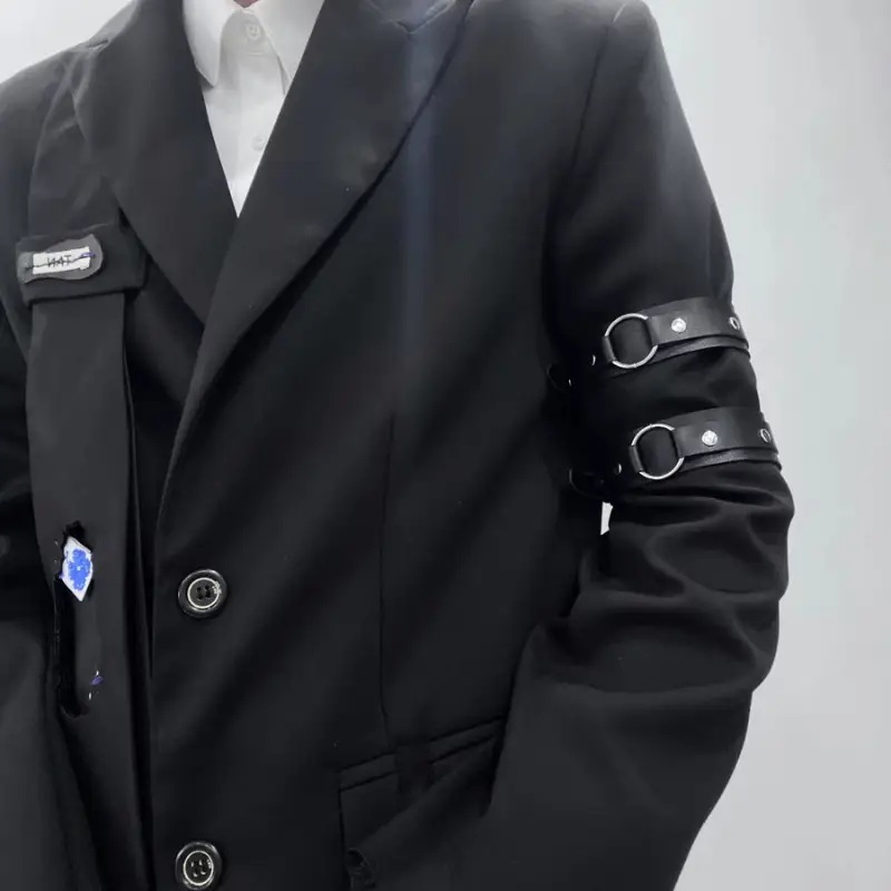> ユニセックス男女兼用調節可能PUレザーアームストラップ袖上げ裾上げリングアクセサリークラブナイトからカジュアル最適調整簡単ストラップ