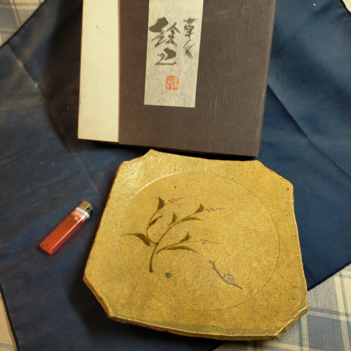 - 草文絵皿 番浦史郎 25cm角 蝸牛