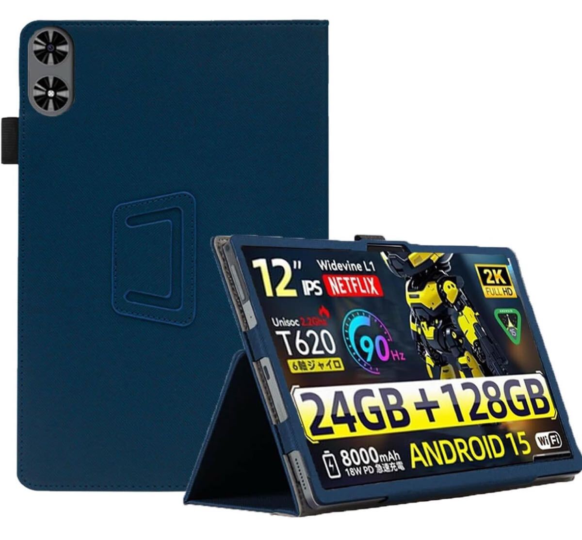 - SVITOO P12 タブレット 12インチ ケース 角度調整 スタンド機能 高級PU レザー 全面保護 調節可能 擦り傷防止 磁気吸着 (ネイビーブルー)