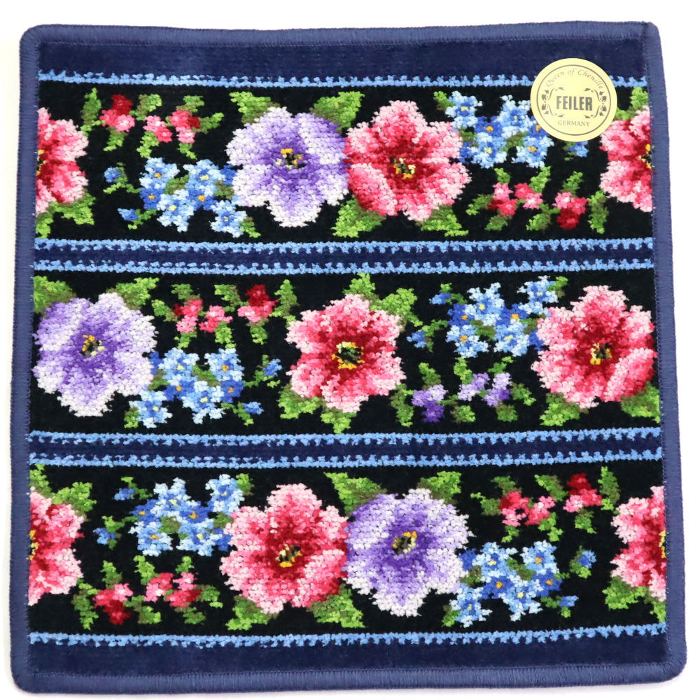 - ★新品★ フェイラーハンカチ 定価2,750円 アデルフローリア 25cm×25cm ネイビー
