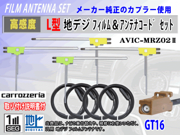 > 地デジ L型 GT16 カロッツェリア AVIC-ZH9000 フィルムアンテナ左右4枚 アンテナコード4本 載せ替え 汎用 高感度 高品質 フルセグ RG8