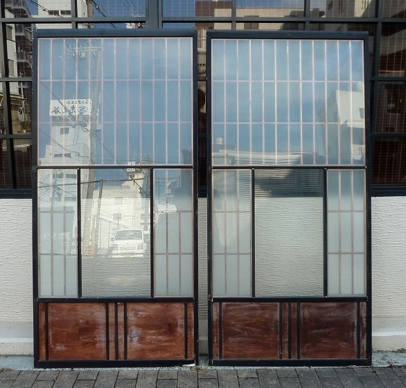 - (☆BM)昭和レトロ 旧家蔵出し品 建具①引き戸 2枚 扉 ガラス 古民家 家具 内装 当時物 アンティーク ヴィンテージ 日本家屋