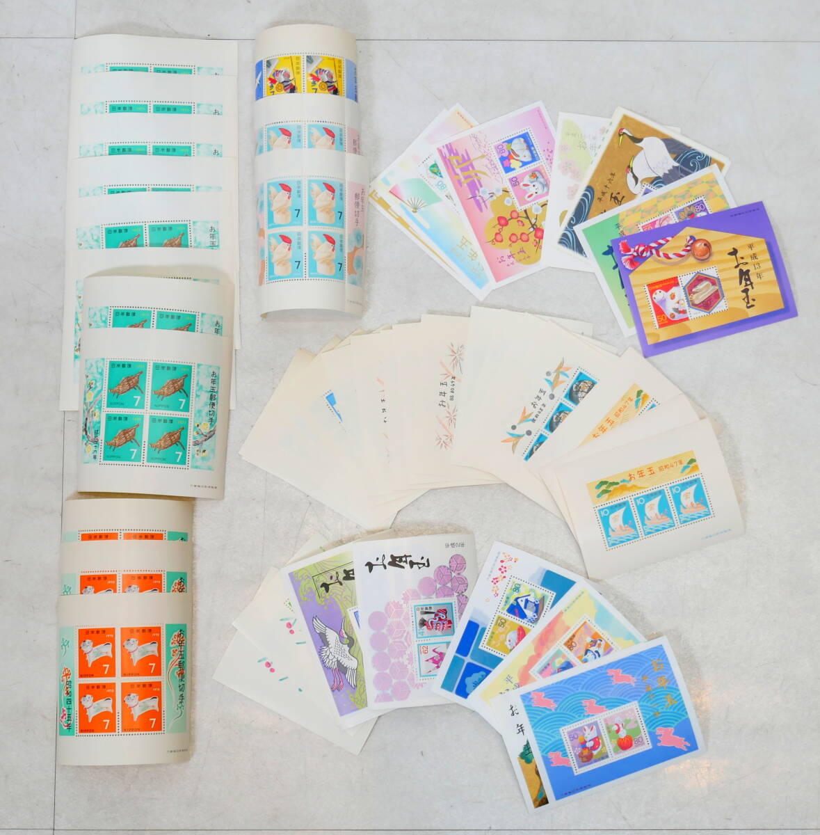 - ▼送料430円(R708-H239) 日本切手 お年玉切手 昭和47年/48年/49年/50年/52年/59年/61年/62年/64年 他有 額面4,075円 計64枚 小型シート