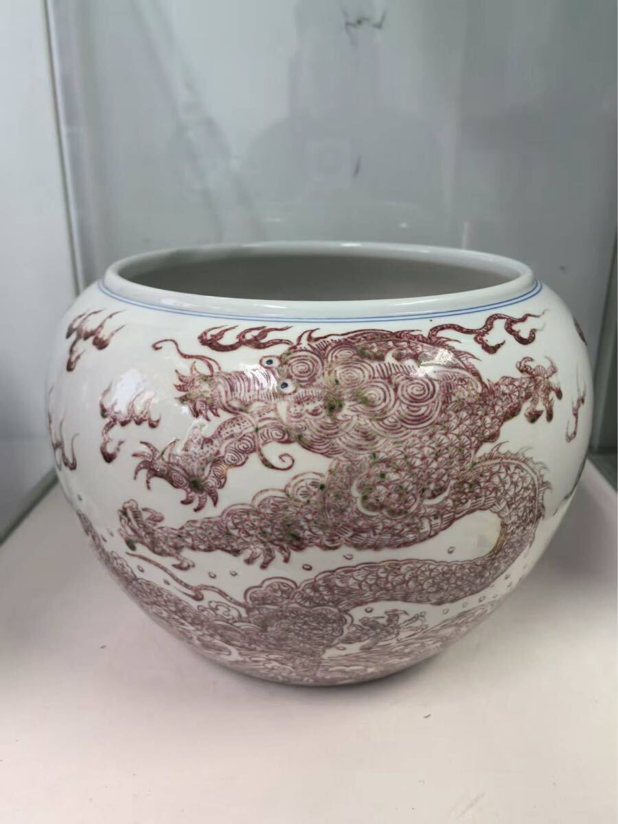 - 【竹河】中国古美術 清時代 康熙 釉裏紅 龍紋 罐 水入 時代物 唐物 古玩 骨董 藏出 置物 骨董品 当時物 置物 飾壺