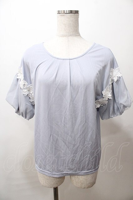 - axes femme / フラワーレースパフ袖リブプルオーバー M サックス Y-25-08-19-058-AX-TO-SZ-ZY