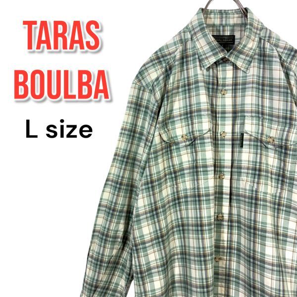 - 90s TARAS BOULBA 長袖 シャツ グリーンチェック柄 Lサイズ タラスブルバ アウトドア キャンプ メンズ