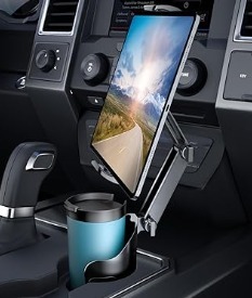 > 車用差し込み式 2in1ドリンク&タブレットカップドリンクホルダー 車 ipadスタンド タブレット 自在調節 高さ調整 片手 全機種取り付け簡単