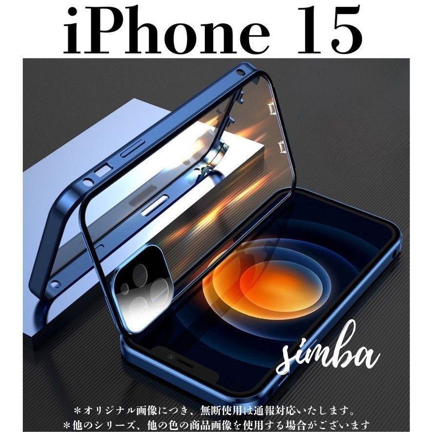 - iPhone 15 ケース 両面ガラス フルカバー マグネット式 透明 ブルー