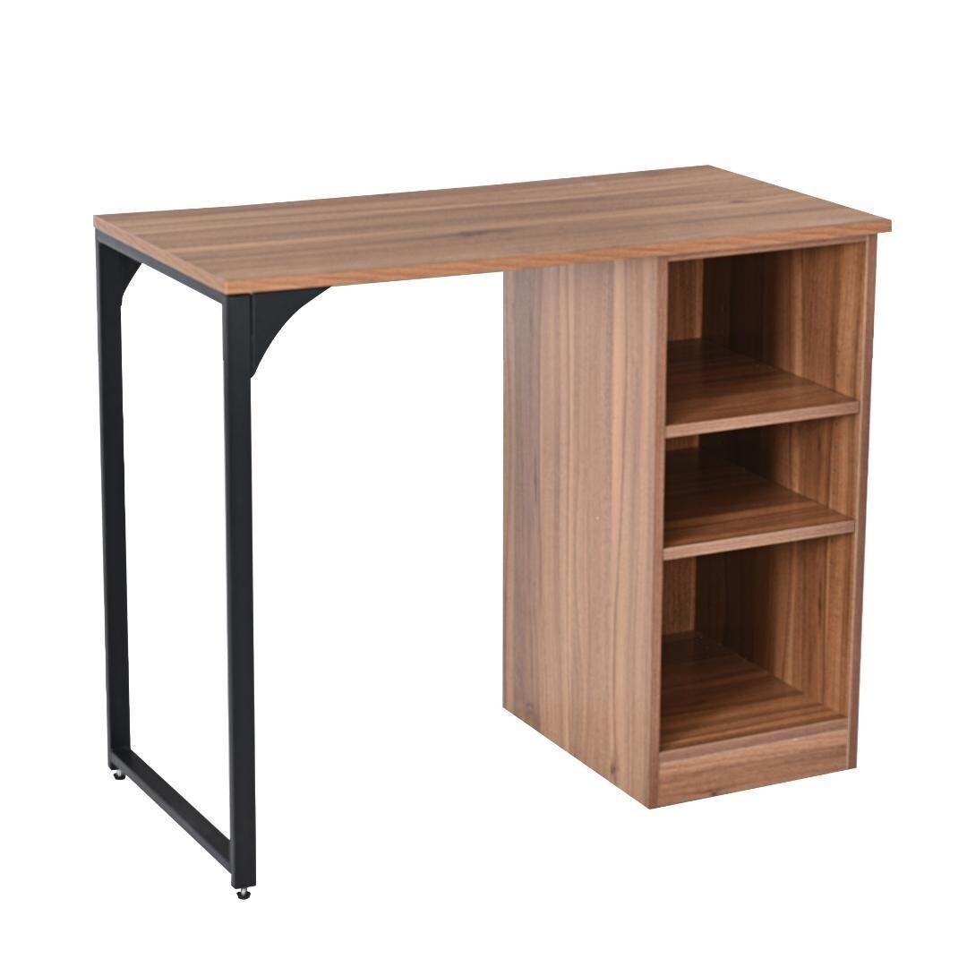 - 【ダークブラウン】パソコンデスク3段シェルフ付 オフィスデスク 簡易デスク 木製 424107