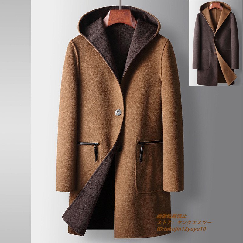 - 定価15万 メンズコート ロングコート フード付き ウールコート 紳士 ビジネスコート 厚手 リバーシブル チェスターコート カーキ 2XL