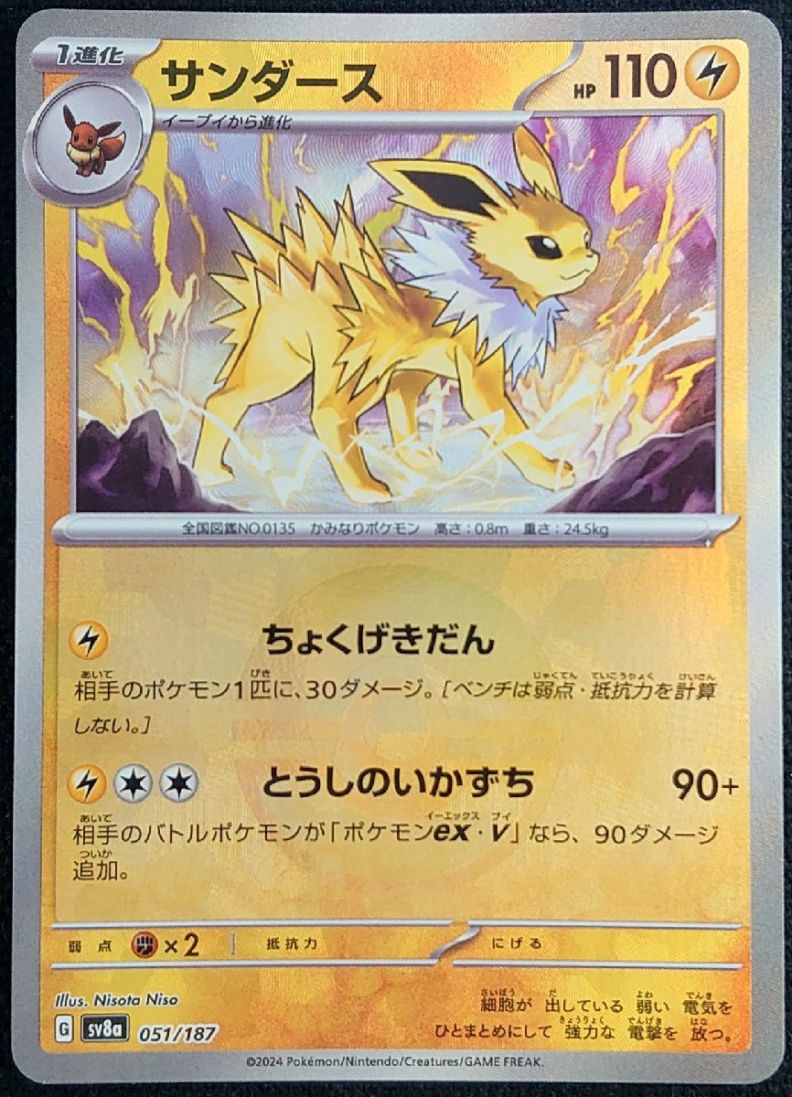 - 【ポケモンカード】サンダース HP110(2024年版/モンスターボール仕様)G sv8a 051/187
