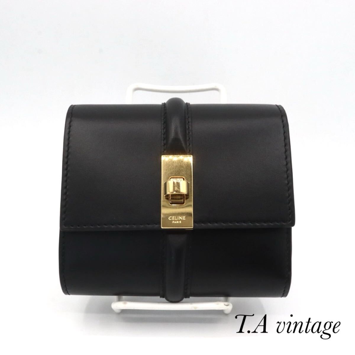 - CELINE 美品 セリーヌ カーフスキン 16 セーズ トリフォールド ウォレット ブラック