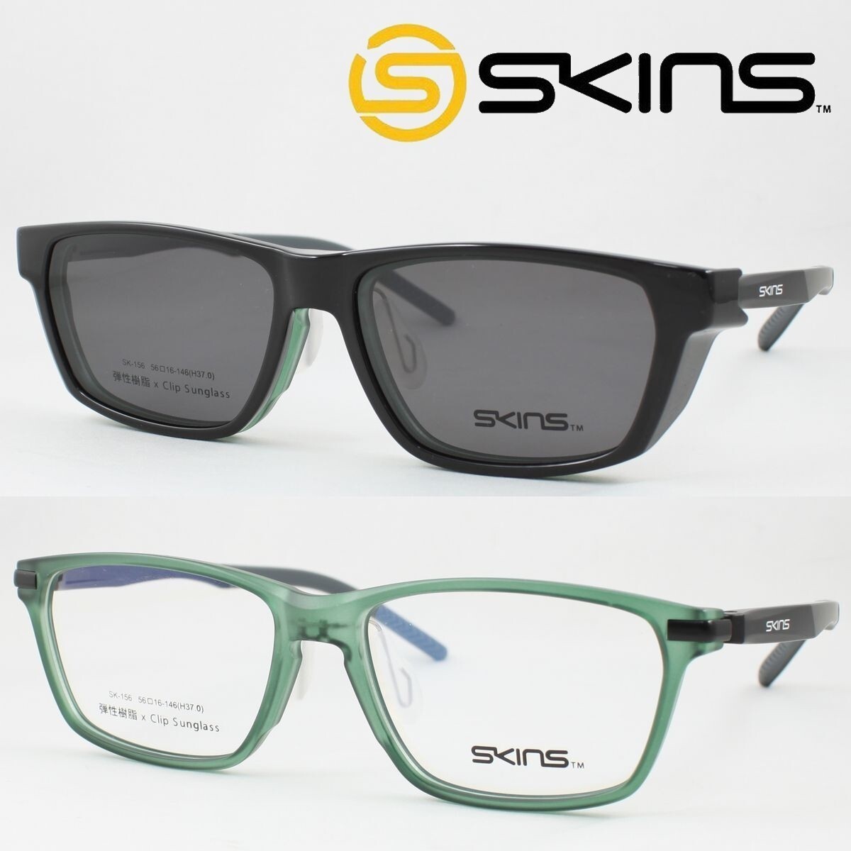 > SKINS スキンズ メガネフレーム SK-156-4 脱着式 マグネットクリップ偏光サングラス 度付き対応 近視 老眼鏡 遠近両用 スポーツ軽量 フード