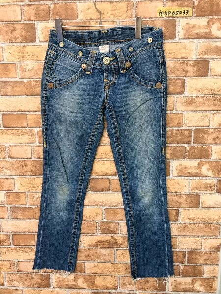 > TRUE RELIGION トゥルーレリジョン レディース カットオフ ステッチ スキニーデニムジーンズパンツ USA 24 青 綿
