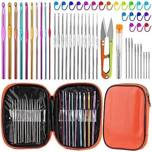 - オレンジ RMTIME 54個セットのかぎ針セット、収納ボックス付きかぎ針フックセット、人間工学に合ったニット針鈍針針跡マーカーDIY初心者手