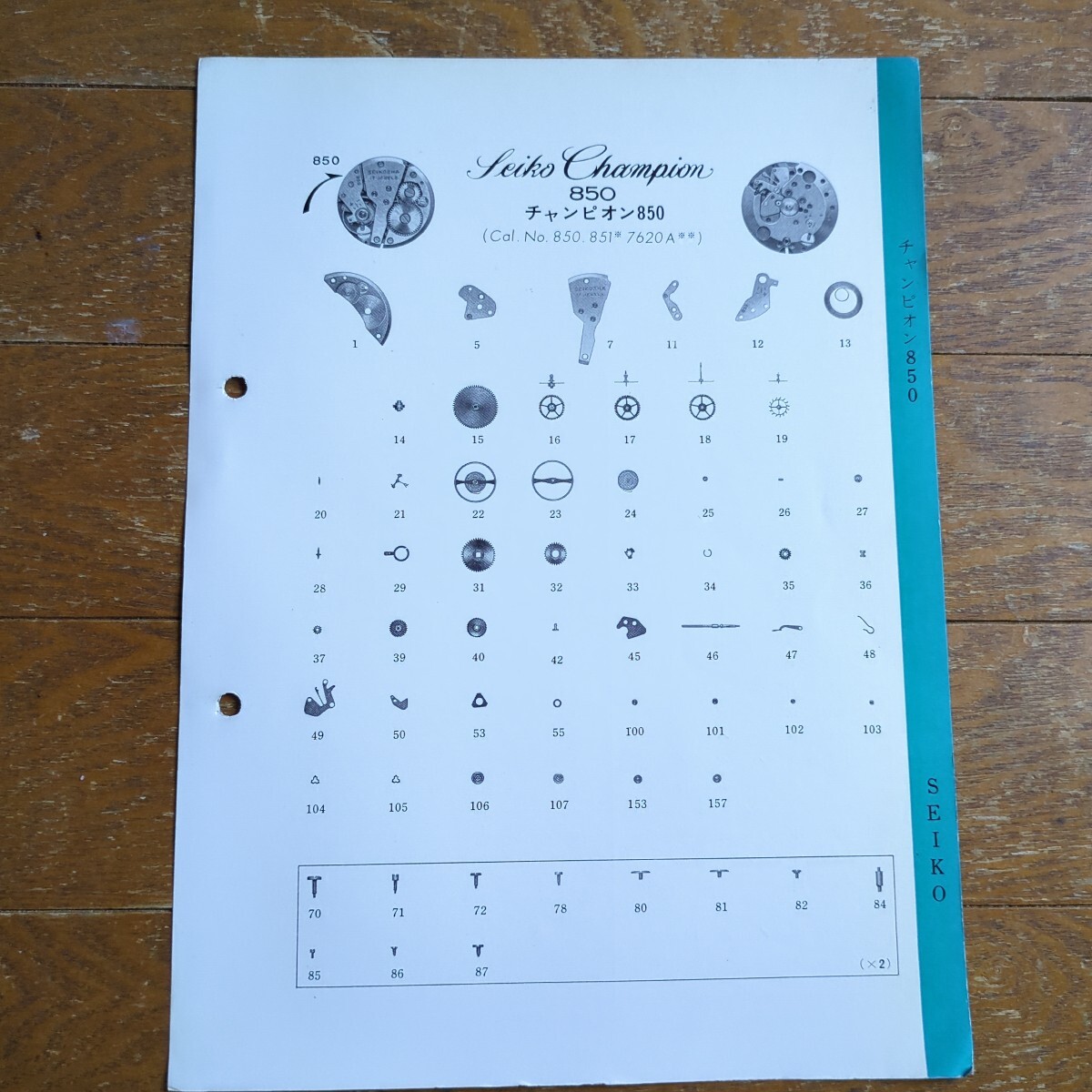- セイコー チャンピオン850(Col.No.850 860 7620A)部品一覧表 1枚物
