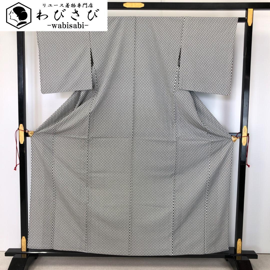 - 単衣 小紋 矢絣 矢羽根 モノトーン 縮緬 K-5234 着物 きもの kimono 和服 和装 中古 リサイクル着物 【送料無料】