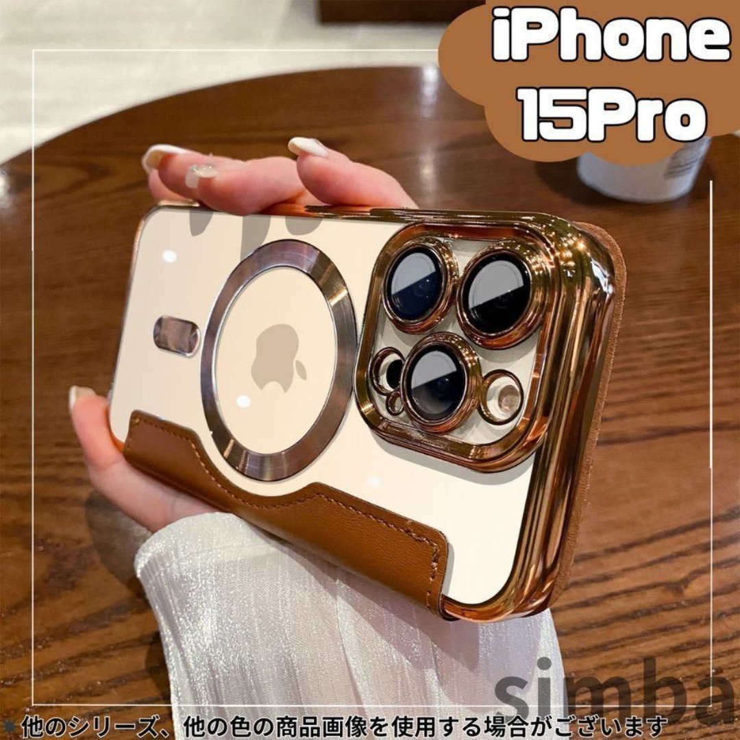 - iPhone 15 Pro ケース 手帳 レザー調 MagSafe対応 ブラウン
