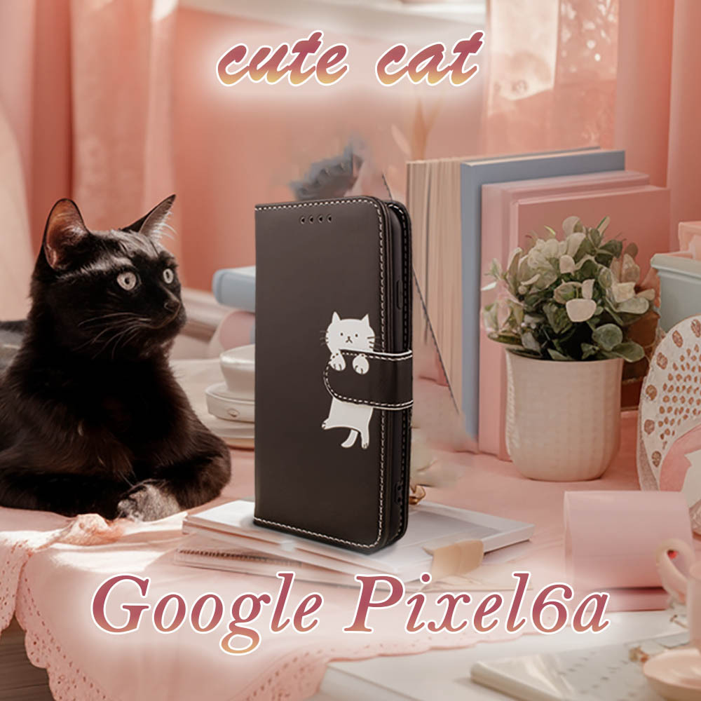 - Google Pixel 6a ケース 手帳型 かわいい Pixel6a ねこ ネコ 猫 人気 カバー ベルト付 黒 ブラック レザー 革 送料無料 安い スマホケース