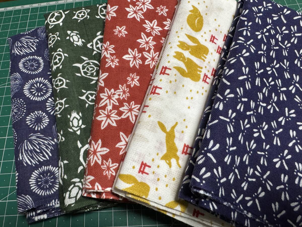 - 5枚 すぐに使える手ぬぐい 端処理済み / 日本製 綿100% / 小紋 和柄 / 手拭い ハンカチ / WAGARA TENUGUI ⑤