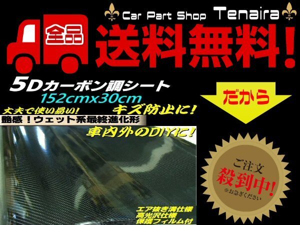 > 5D カーボン シート カッティング 切売 152cm×30cm 黒 ブラック DIY 艶有 光沢 伸縮 エア 抜き 溝有 送料無料/6