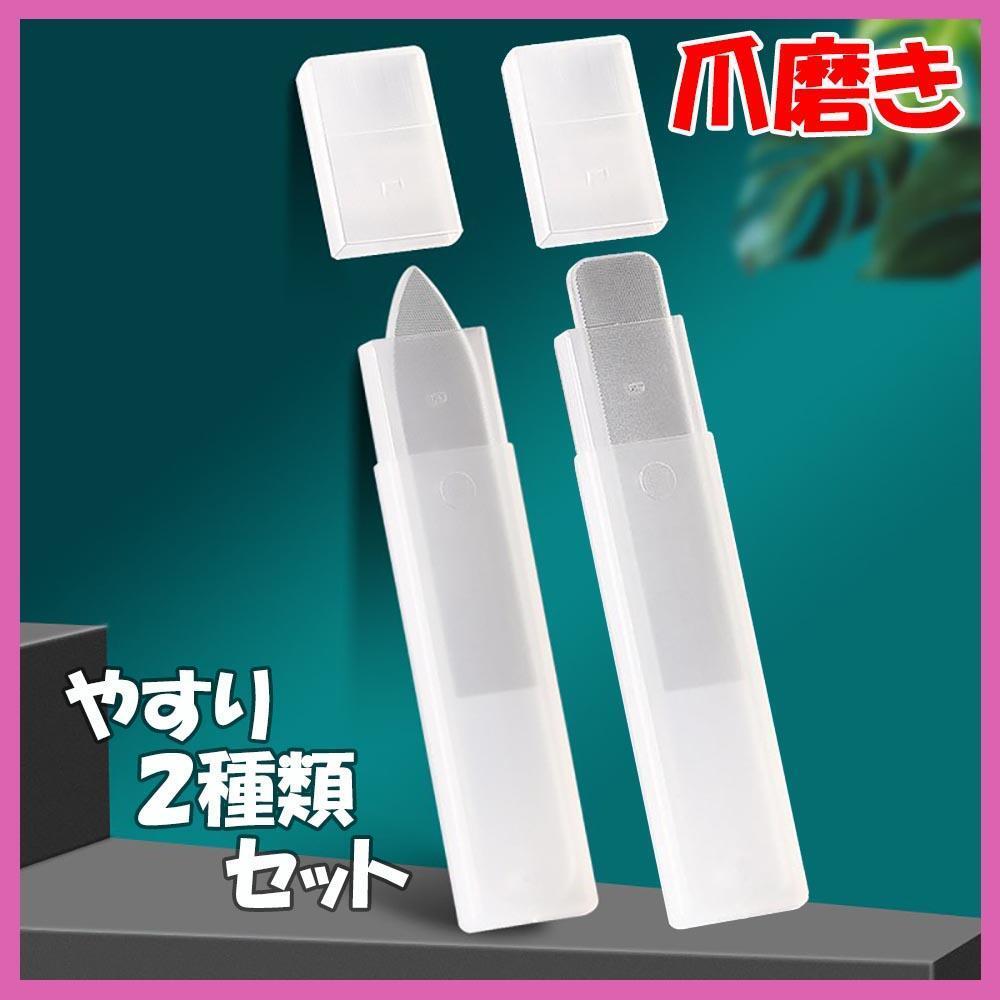 - 爪やすり 爪磨き ガラス製 つや出し ナノ技術 ネイルファイル 2種類セット 爪 やすり ネイルケア クリア ケース入り スクエア型 ラウンド型
