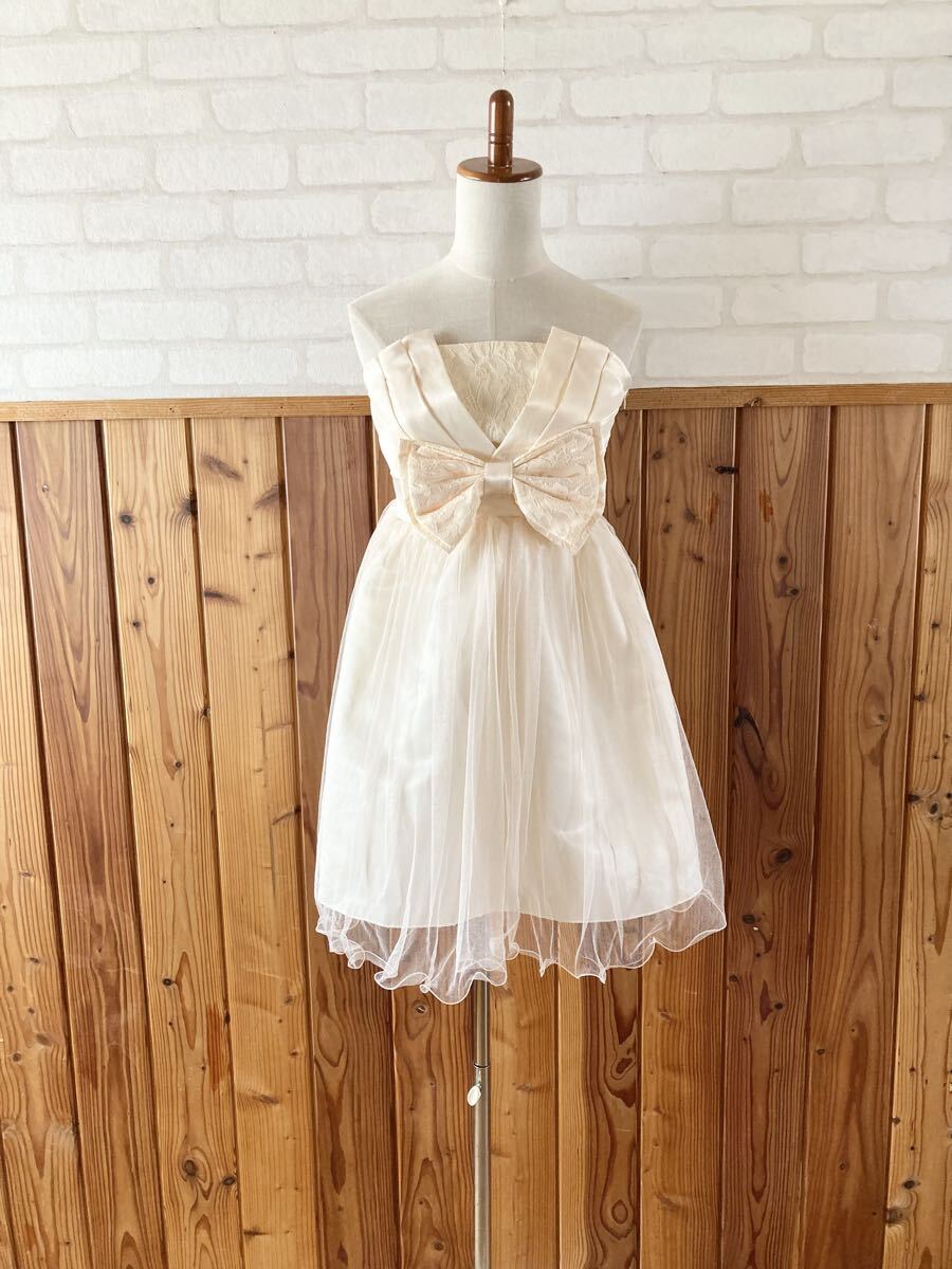 > レディース フォーマル ワンピース Mサイズ位 アイボリー リボン レース ミニスカート ベアトップ チューブトップ パーティドレス dress A