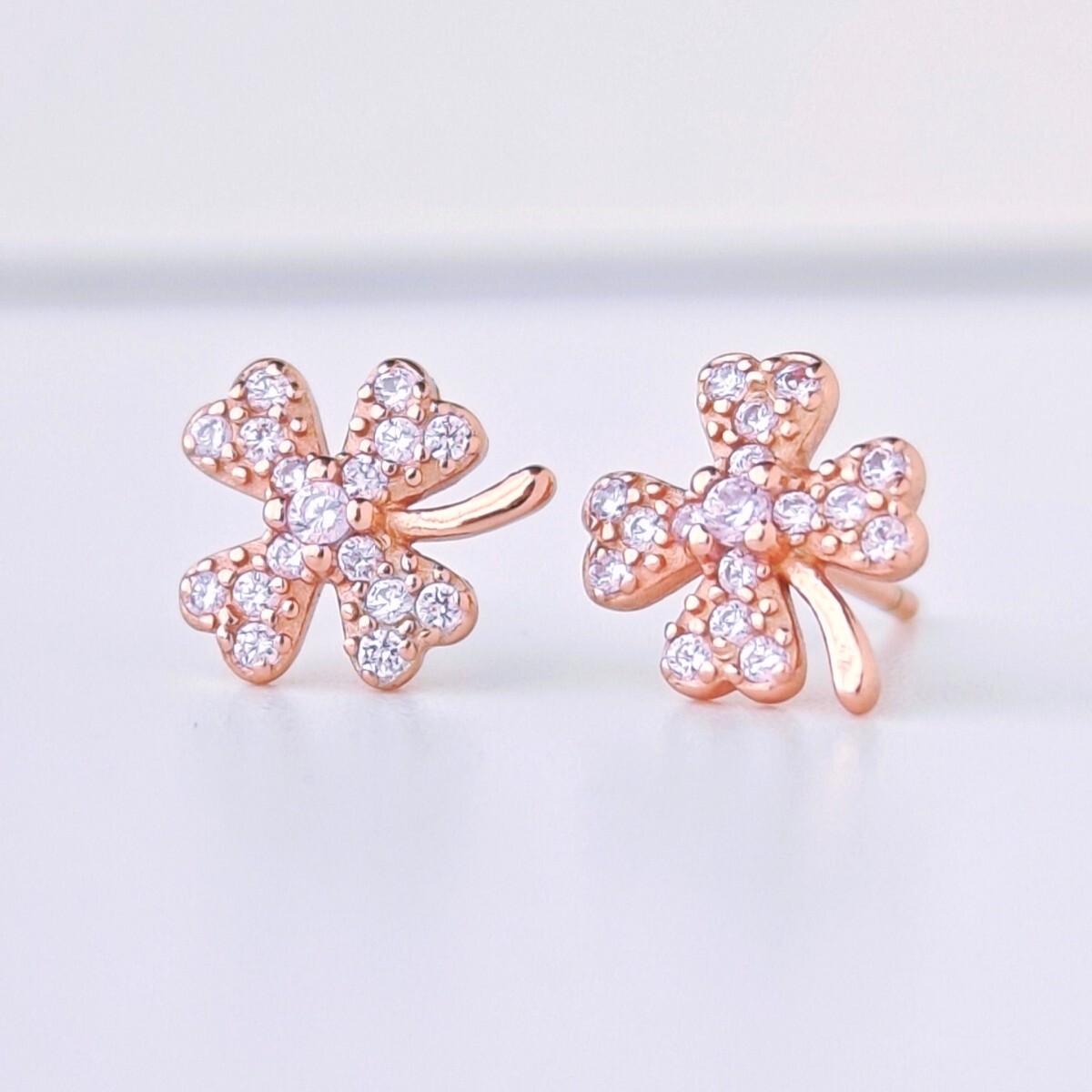 - 四つ葉クローバーパヴェ・ピアス・シルバーs925・k18ピンクゴールド色