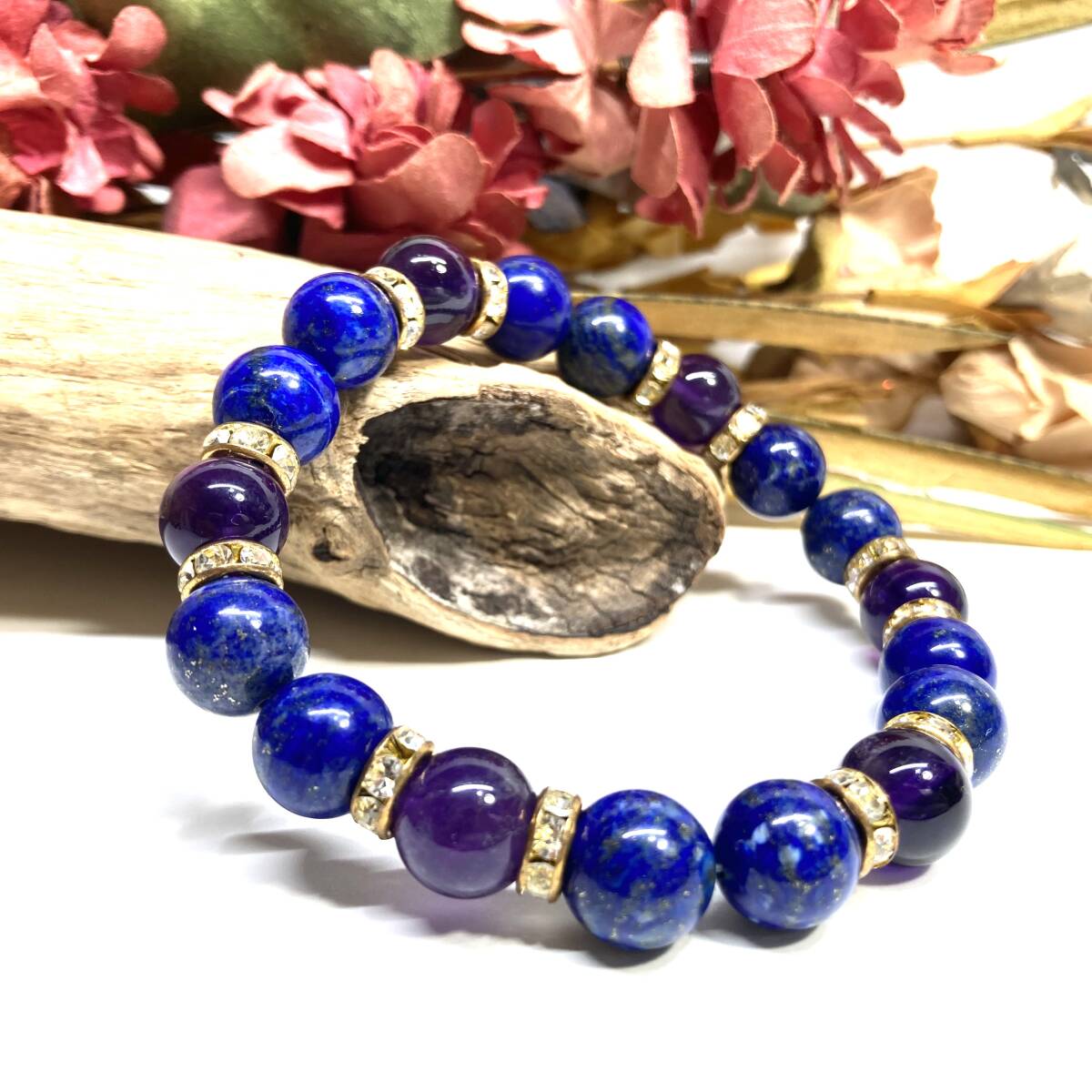 - ラピスラズリ&アメジスト パワーストーン ブレスレット 天然石ブレス (ゴールド) 10mm メンズ・レディース 恋愛運 ☆