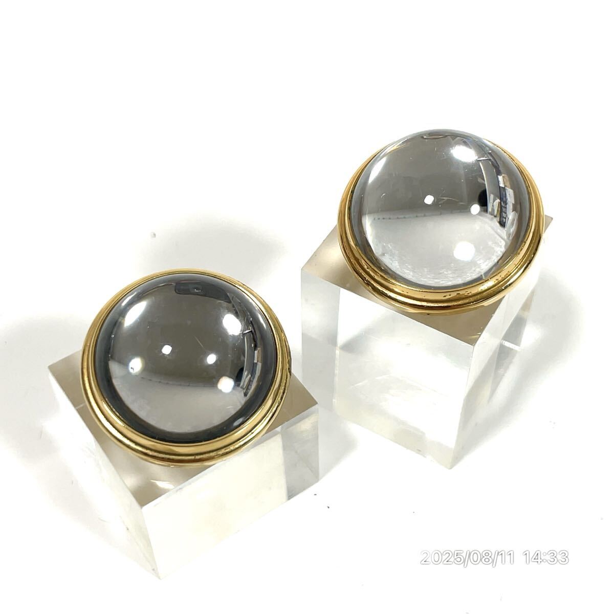 - LALIQUE ラリック サークル調 クリスタル ラインストーン ゴールドカラーボディ イヤリング ピアス アクセサリー 装飾品 ファッション 小物