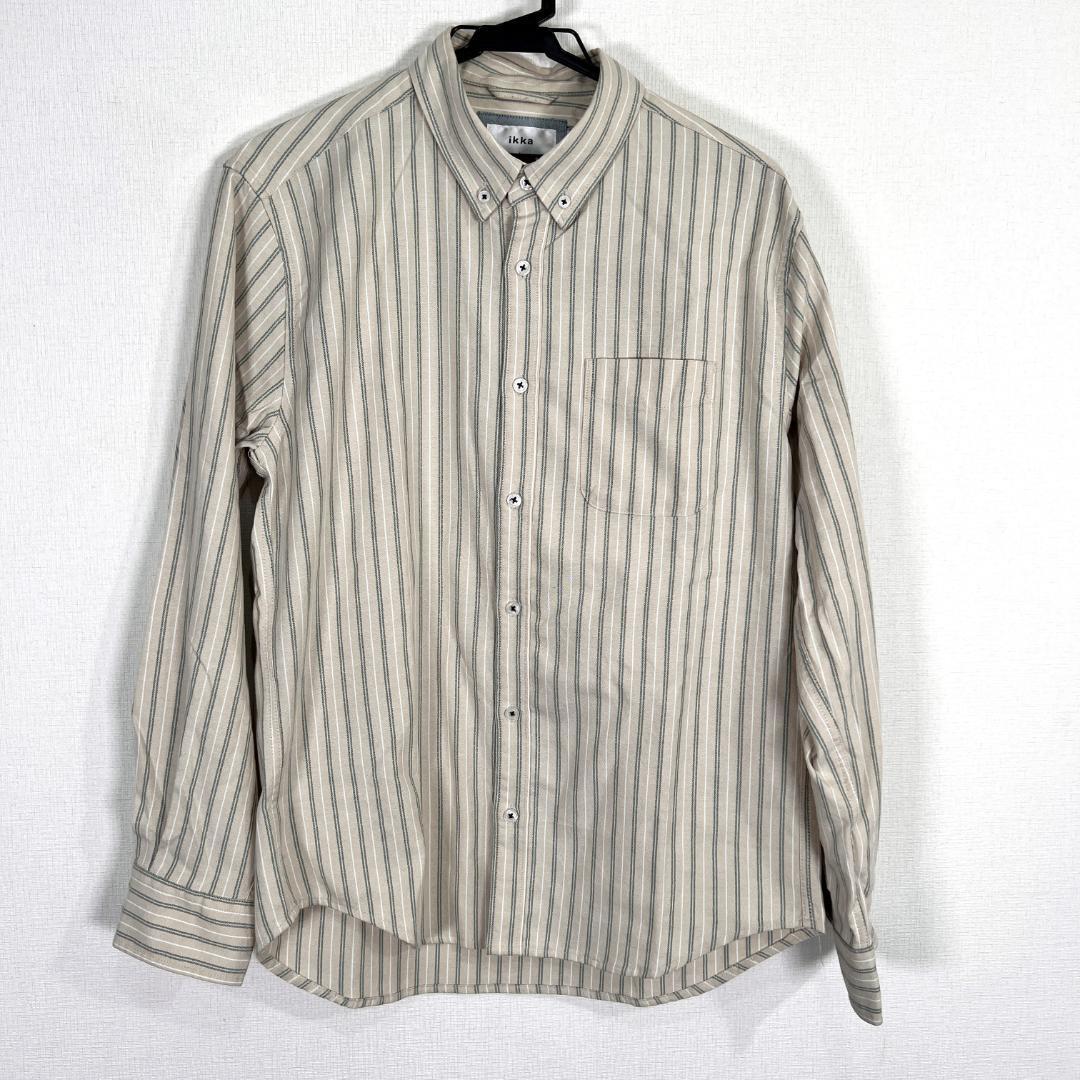 - 【ikka】イッカ ベージュ ストライプ 長袖 シャツ ボタンダウン トップス 男性用 メンズ Lサイズ【a014】