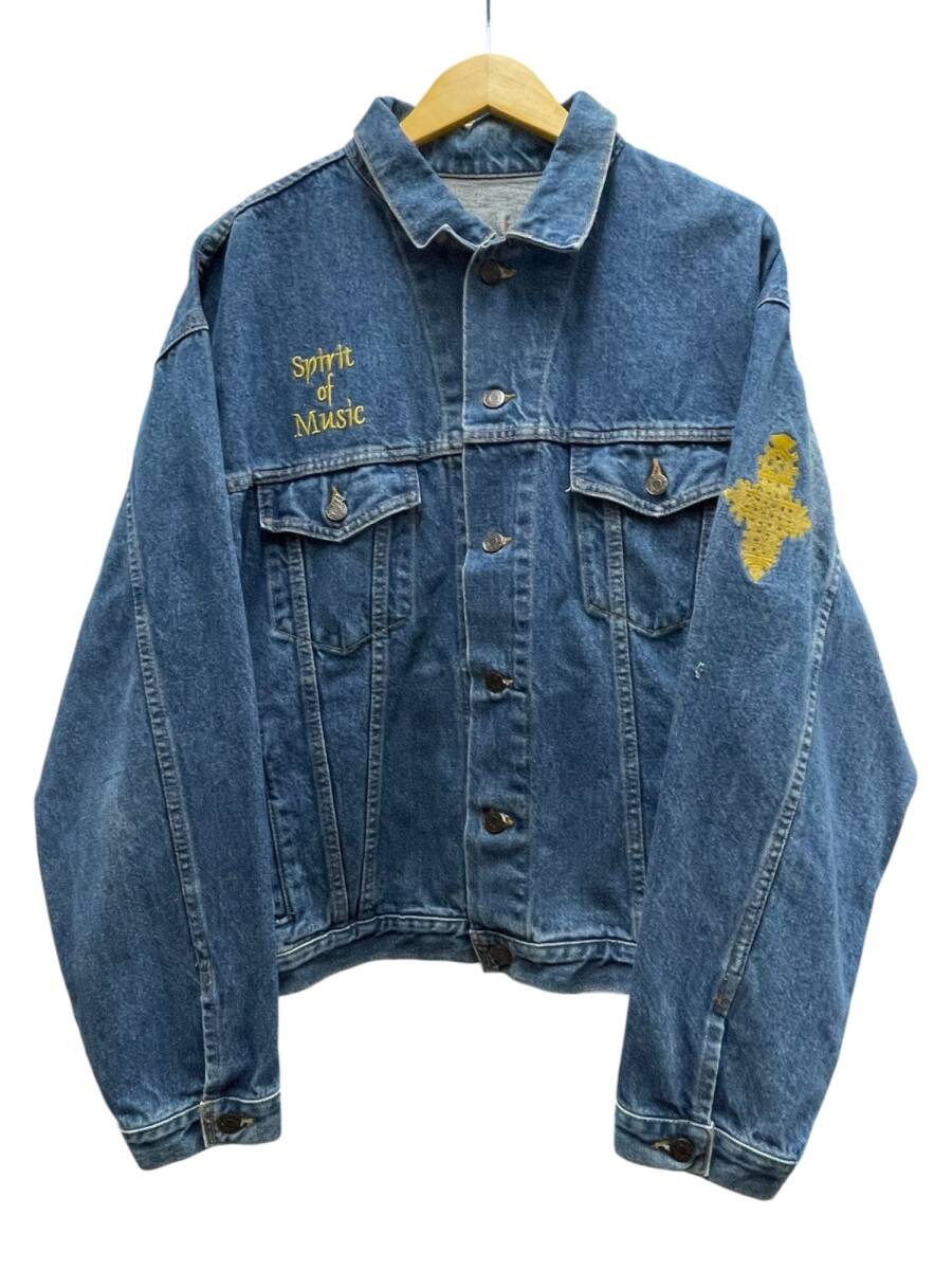 > iD wear (アイディーウエア) 長袖 デニム ジャケット Gジャン 刺繍 十字架 コットン XL インディゴ メンズ/025
